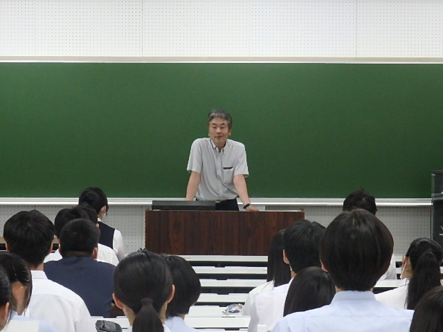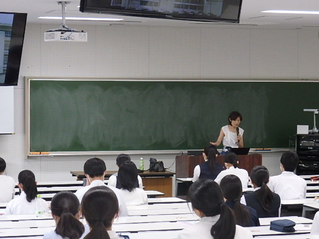 今回は、齋藤知也教授(言語教育講座)及び秋山麻実教授(幼小発達教育講座)がそれぞれ「学ぶ人から教える人へ」、「育つ人から育てる人へ」という連関したテーマで講義を行いました。どちらの講義においても参加した高校生から積極的に発言があり、有意義な講座となりました。