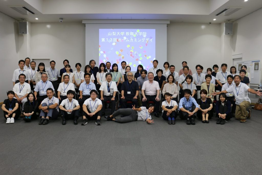 大学院教育学研究科教育実践創成専攻(教職大学院)は、8月24日(土)に山梨大学教職大学院第13回ホームカミングデイを開催しました。途中激しい雨に見舞われましたが、本教職大学院教職員、修了生及び在学生54名の笑顔と笑い声に包まれたアットホームで温かな集いとなりました。