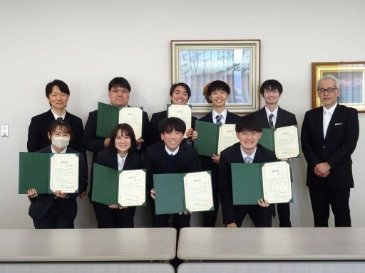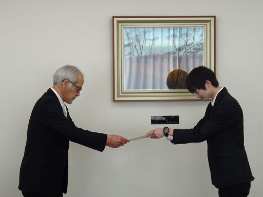 山梨CST(コア・サイエンス・ティーチャー)養成プログラムを修了した教育学部4年生3名,3年生5名に対して,服部一秀教育学部長から山梨CST(学生)の認定証が授与されました。