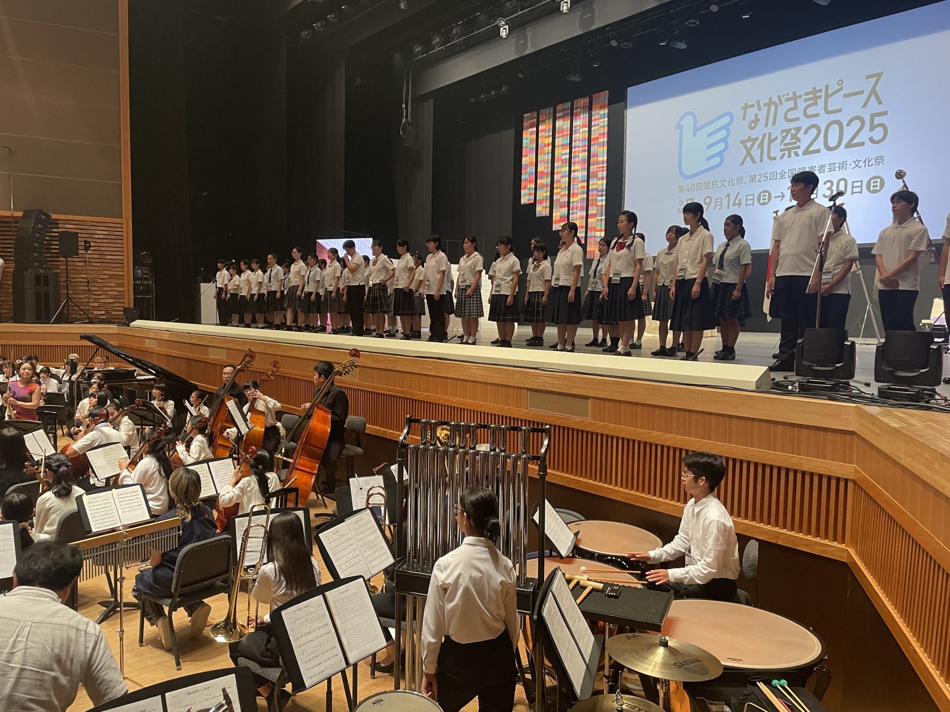 河野久寿准教授がながさきピース文化祭2025開会式で音楽を担当 2025年9月25日 第40回国民文化祭 第25回全国障害者芸術・文化祭 ながさきピース文化祭2025(主催 文化庁、厚生労働省、長崎県、長崎県実行委員会、県内市町ほか)開会式が令和7年9月14日(日)アルカスSASEBO(佐世保市)にて開催されました。 オーケストラと合唱による編成で開会式プロローグ(約20分)と天皇皇后陛下御入退場の音楽を演奏、河野准教授は全楽曲の作編曲を担当しました。 ながさきピース文化祭2025は11月30日(日)まで開催されます。 【会場の様子】
